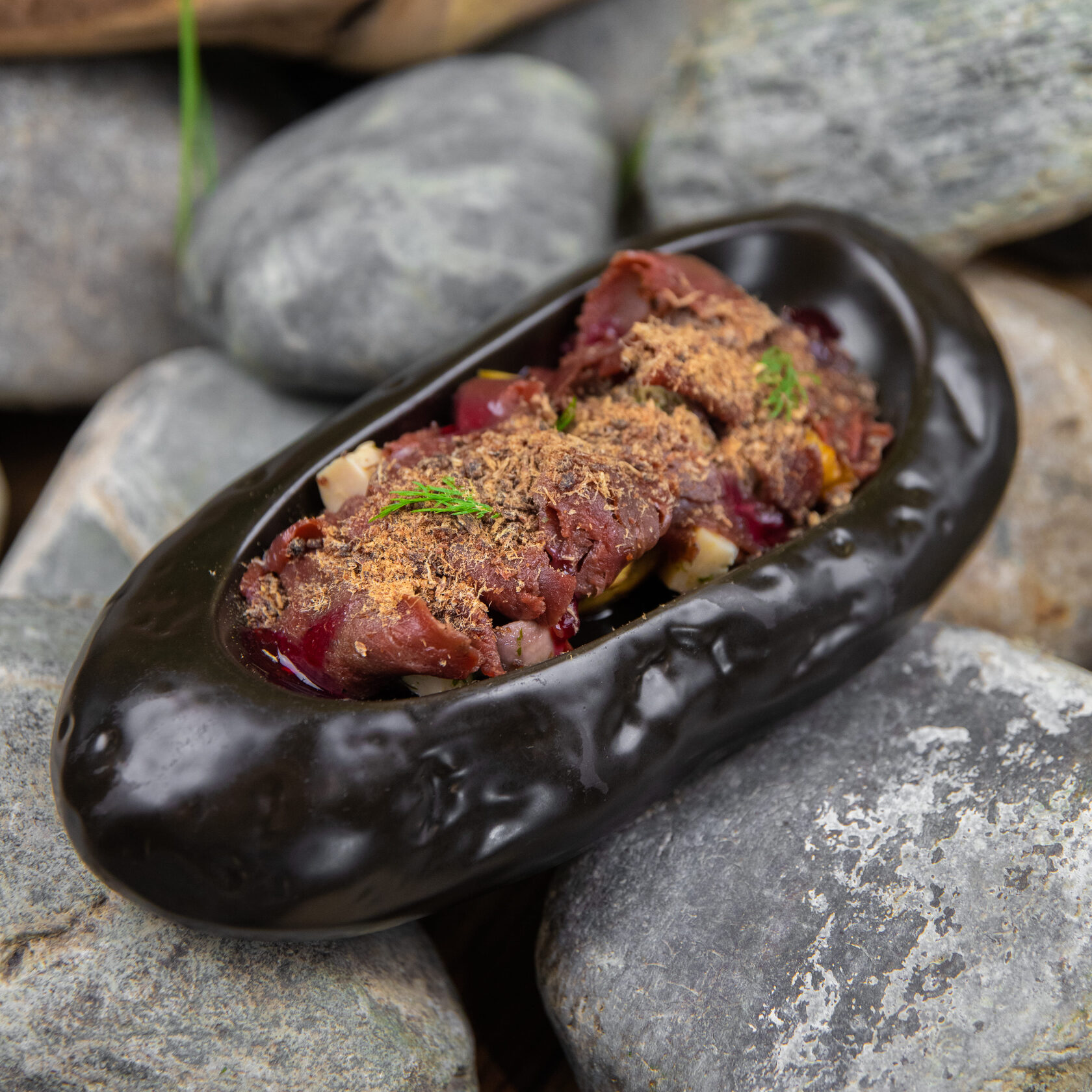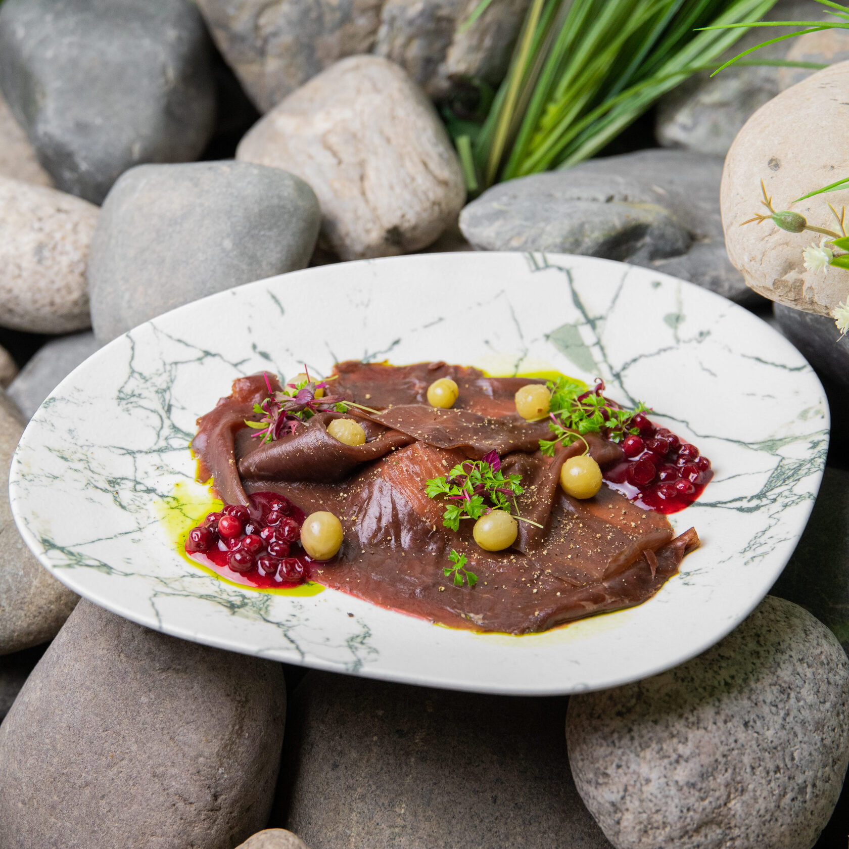 Нам близка природа и её вкусы. Мы не гонимся за трендами — мы идём своим путём. Работаем с тем, что даёт Север и Сибирь: дичь, рыба, лес. Основа наших блюд — сиг, муксун, форель, омуль с Байкала, северная оленина, мясо лося.